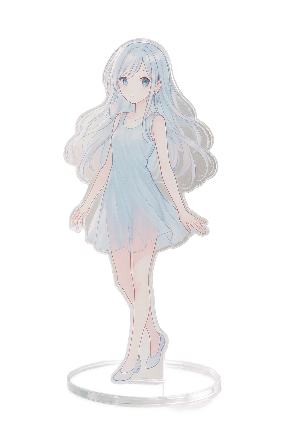 透明度の高いアクリル素材で、イラストが鮮明に映えます。デスクや棚のインテリアに最適で、空間に彩りを添えます。